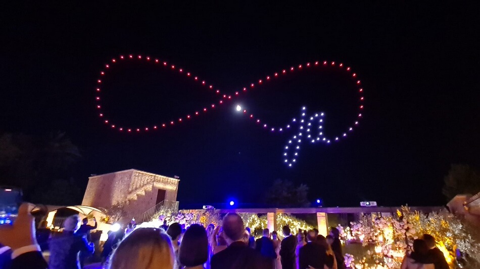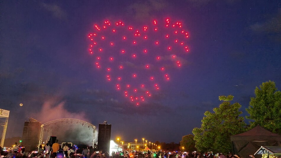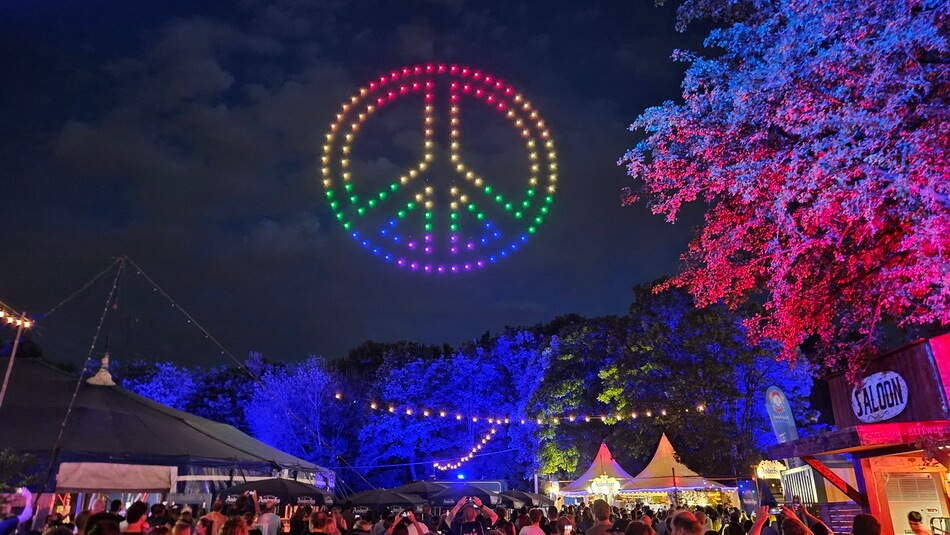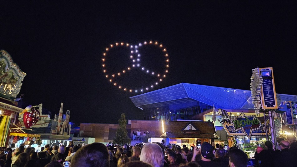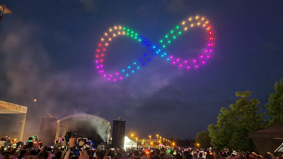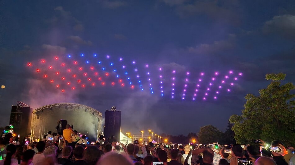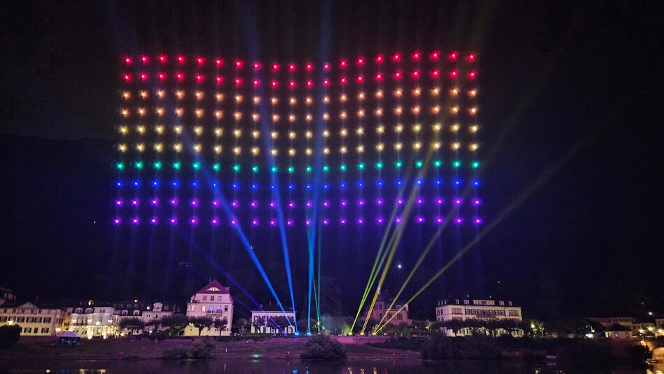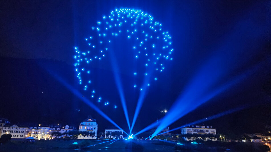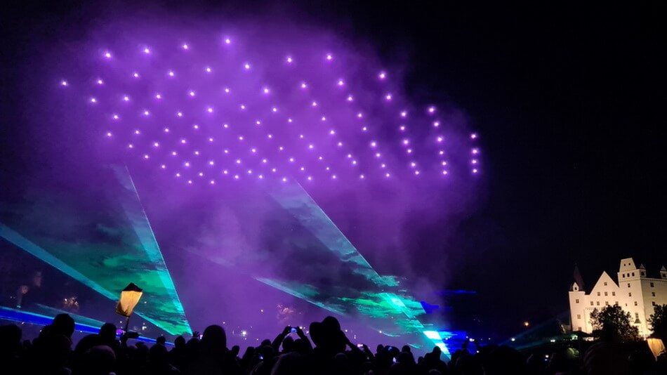 Buchen Sie eine Drohnenshow für ein Event, Jubiläum, Volksfest, Stadtfest, Festival oder Hochzeitsfeier.