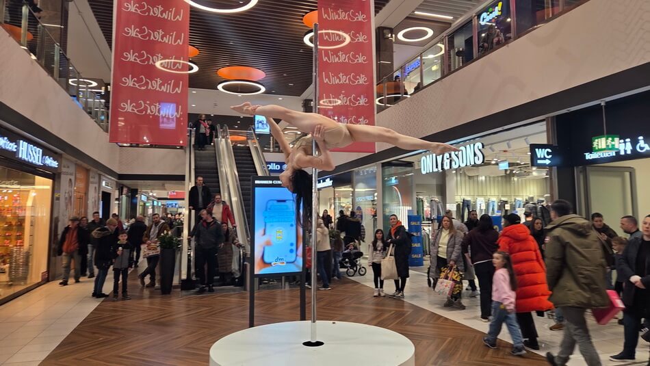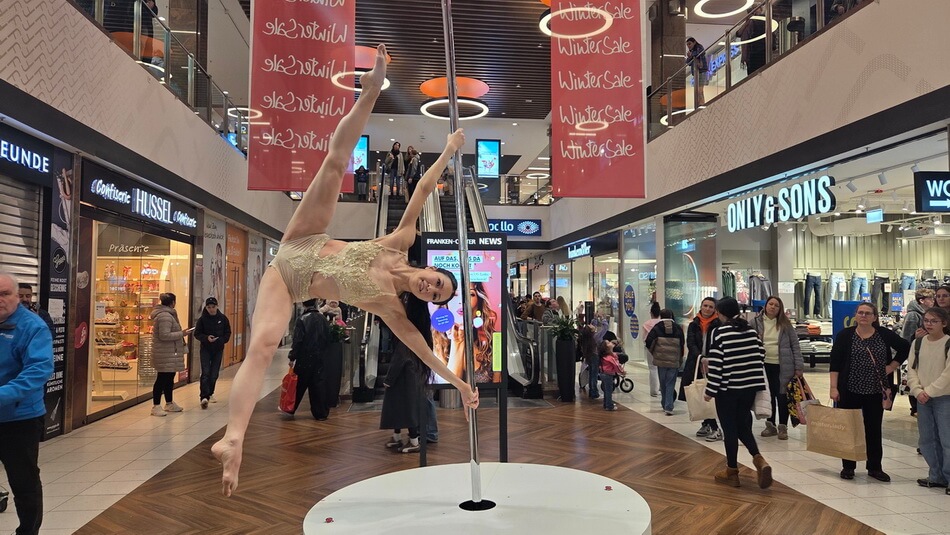 Die perfekte Bühne für unvergessliche Momente, um Ihre Gäste und Kunden mitzureißen. Auf der mobilen Showbühne ist Platz für Tänzer, Akrobaten, Musiker, Sänger, eine DJane oder Dekoration. Die 1,6 m durchmessende Bühne kann durch einem DJ-Tisch, einer Pole-Stange, einer Spirale oder einem Lollipop ergänzt werden.