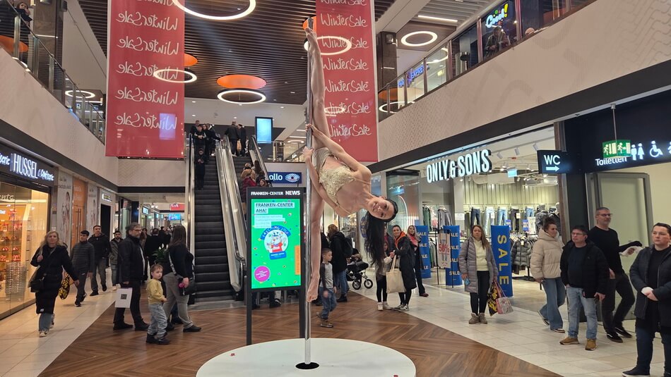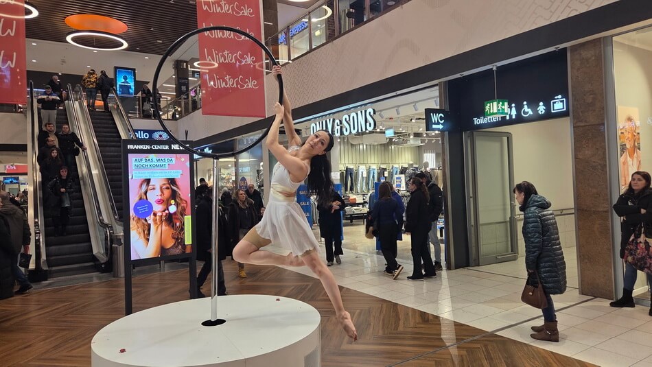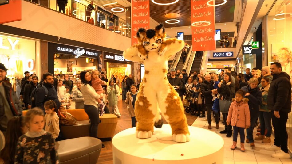 Durch ihre runde Form und die Möglichkeit, sich in alle Richtungen und sogar auf der Stelle zu drehen, sind 360°-Auftritte möglich.