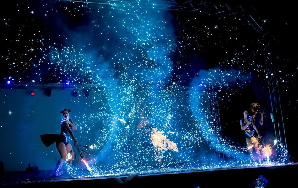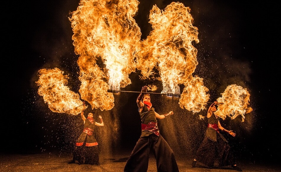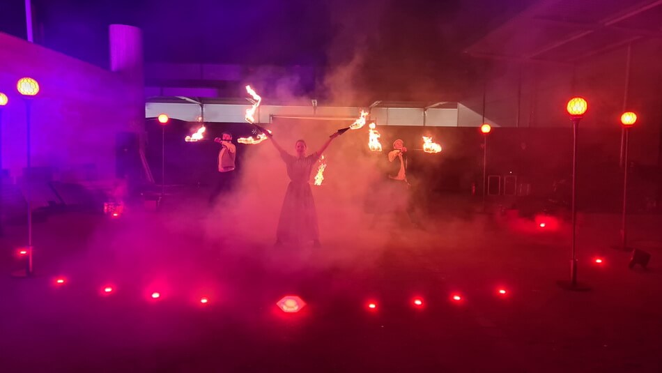 Beeindruckende Flammeneffekte, stilvolle, musiksynchrone Choreografien, die passende Musik und tolle Kostüme sorgen für einen Hauch von Magie. Mit einer Feuershow hinterlassen Sie bei Ihren Gästen einen staunenden und bleibenden Eindruck.