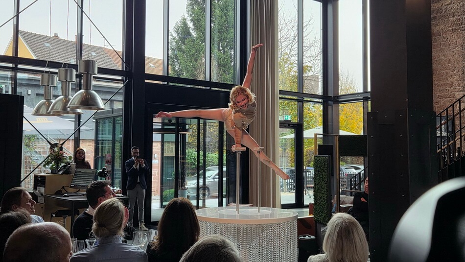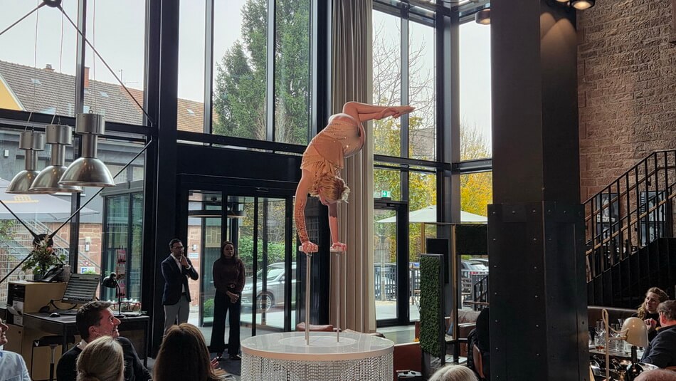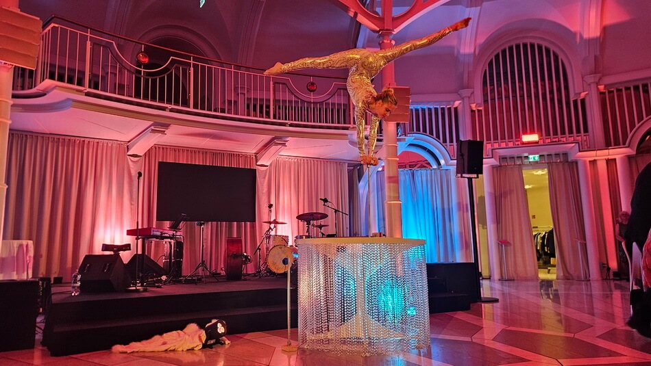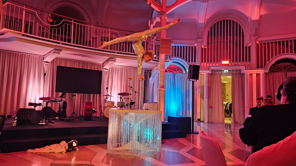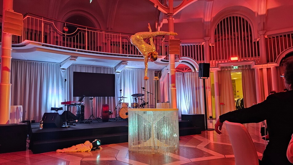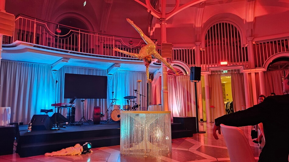 Diese Weltklasse Handstandnummer eignet sich perfekt für Firmenevents, White oder Gold-Themen, Luxusevents, private Veranstaltungen, Preisverleihungen, Hochzeiten, Ehrungen, Eröffnungen, 20er Jahre Partys, Casinoabende, die Glamour und Eleganz ausstrahlen sollen.